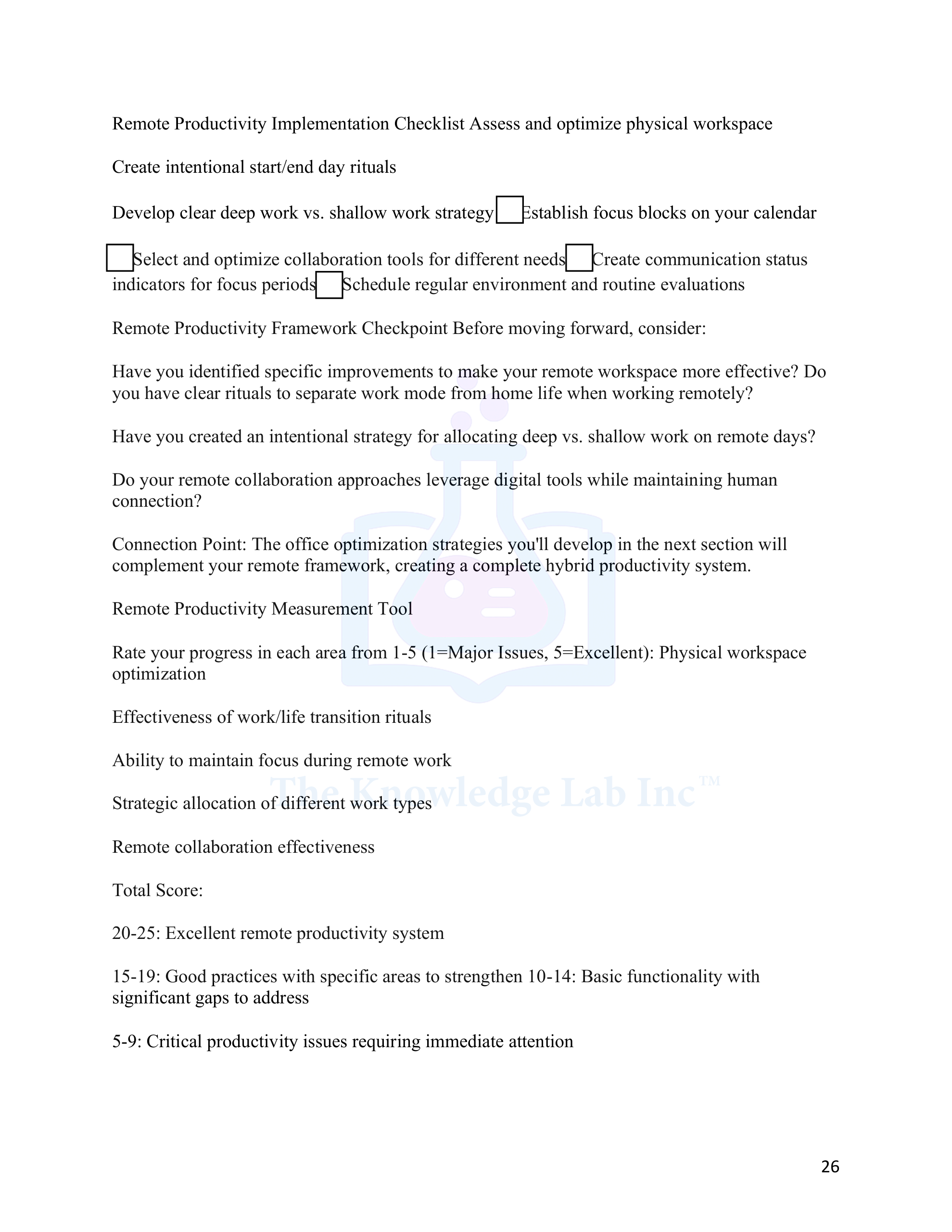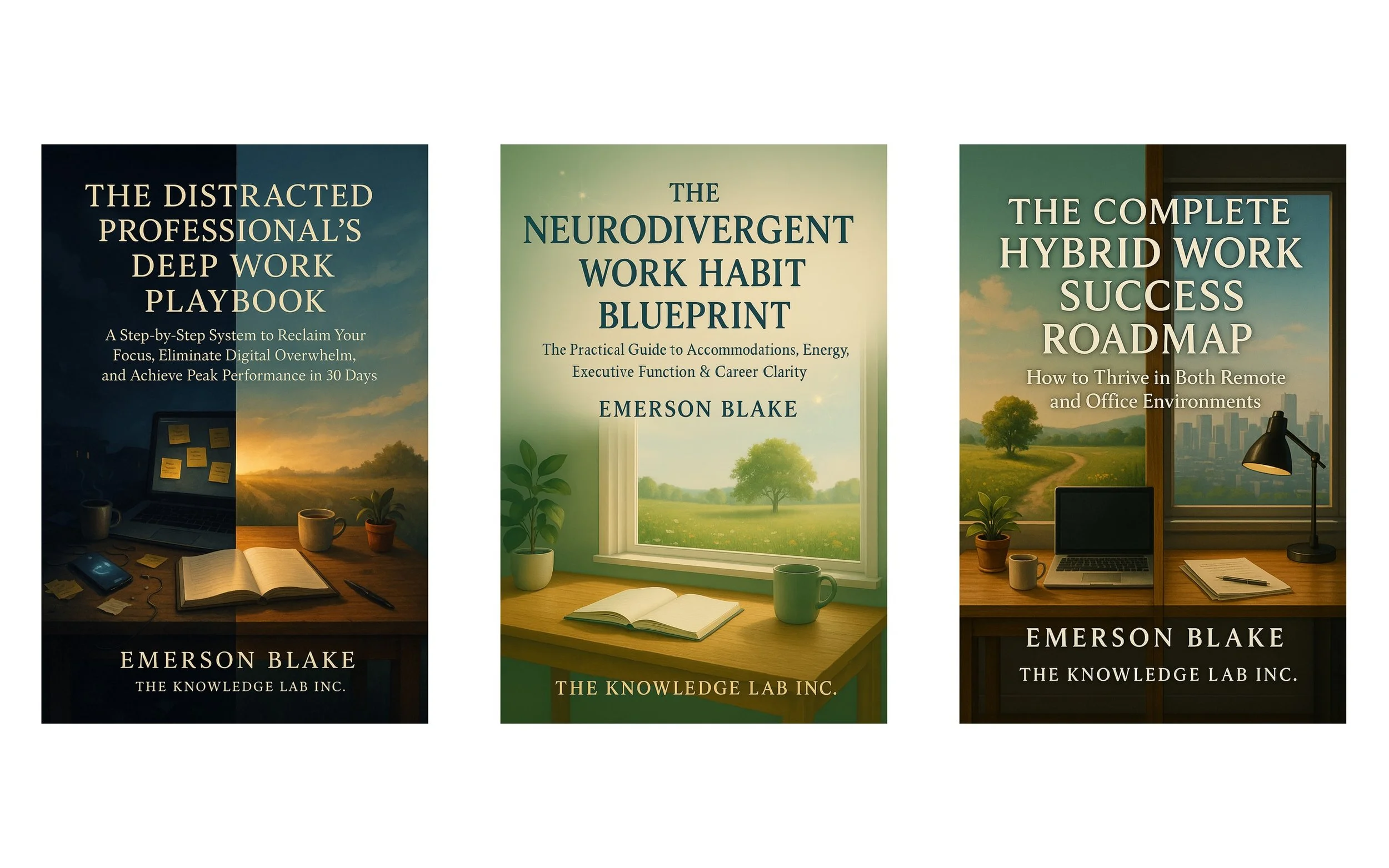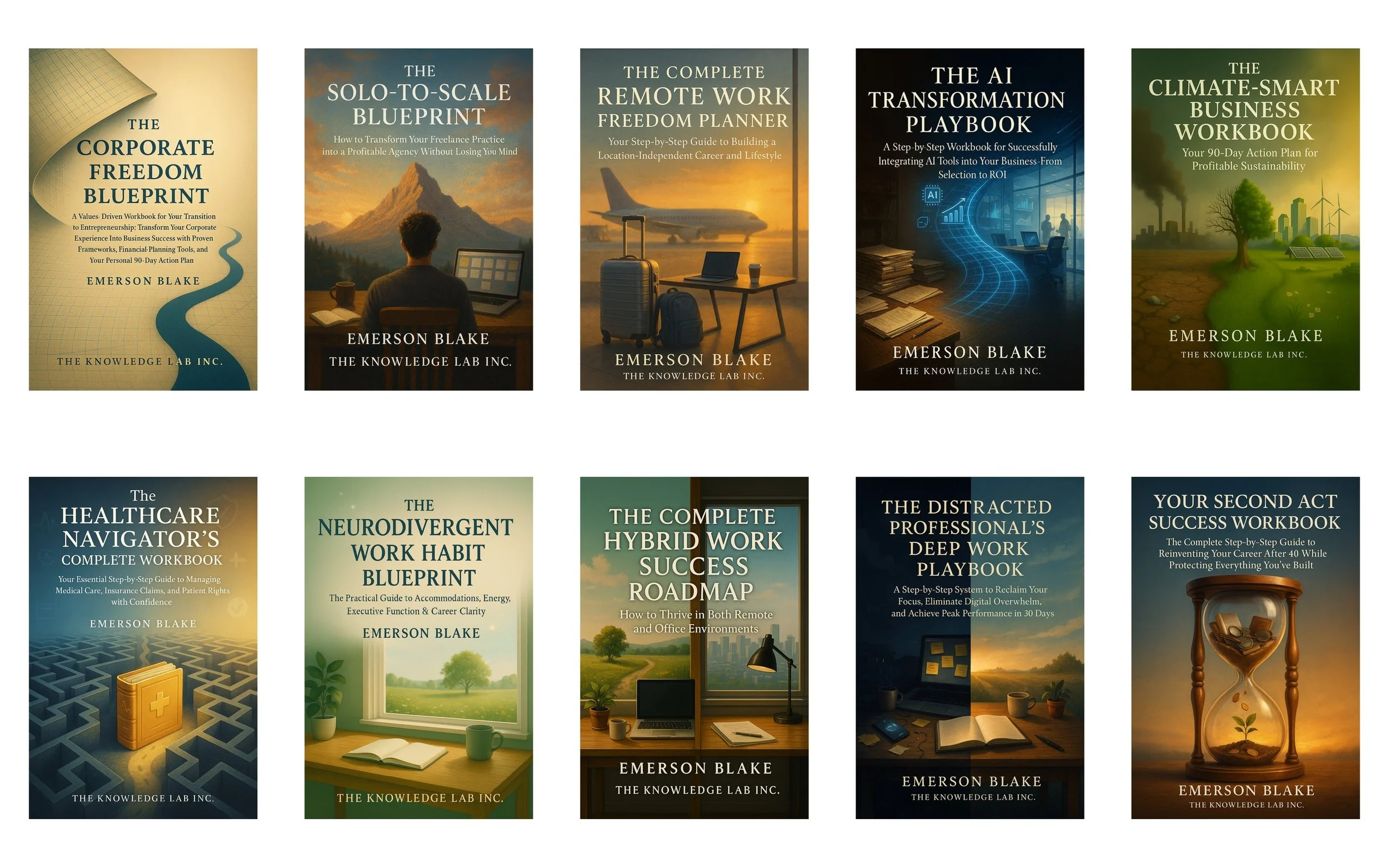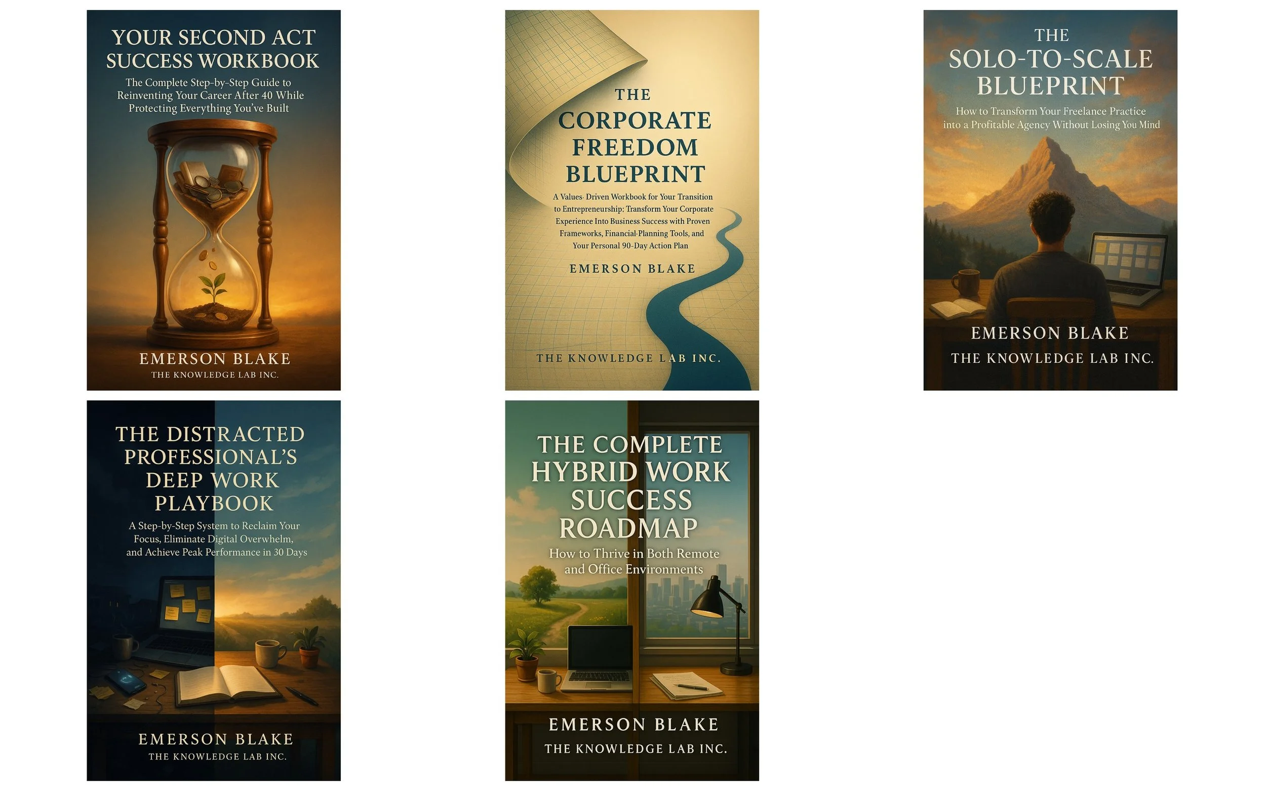 Categories: All Remote Work Resources Business Scaling Resources Career Transition Resources All | Remote Work Resources | Business Scaling Resources | Career Transition Resources | Focus & Workflow Starter (3-Pack of Interactive PDF's) Sale Price: US$99.00 Original Price: US$117.00 Sale Second-Act Launch, After 40 Reinvention (5-Pack of Interactive PDF's) Sale Price: US$159.00 Original Price: US$195.00 Sale Modern Work Mastery (7-Pack of Interactive PDF's) Sale Price: US$199.00 Original Price: US$273.00 Sale The Knowledge Lab Inc Complete Library (10-Pack of Interactive PDF's) Sale Price: US$279.00 Original Price: US$390.00 Sale Your Second Act Success Workbook, (Interactive PDF) US$39.00 The Distracted Professional's Deep Work Playbook, (Interactive PDF) US$39.00 The Complete Hybrid Work Success Roadmap, (Interactive PDF) US$39.00 Neurodivergent Work Habit Blueprint, (Interactive PDF) US$39.00 The Health Navigator's Complete Workbook, (Interactive PDF) US$39.00 The Climate-Smart Business Workbook, (Interactive PDF) US$39.00 The AI Transformation Playbook, (Interactive PDF) US$39.00 The Complete Remote Work Freedom Planner, (Interactive PDF) US$39.00 The Solo to Scale Blueprint, (Interactive PDF) US$39.00 The Corporate Freedom Blueprint (Interactive PDF) US$39.00